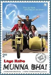 Lage Raho Munna Bhai (pronounced [ləˈɡeː rəˈɦoː mʊnːaːˈbʱaːi] ⓘ; translation: Keep Going, Munna Bro) is a 2006 Indian Hindi-language satirical comedy drama film written, edited and directed by Rajkumar Hirani, who also co-wrote the screenplay with Abhijat Joshi, and produced by Vidhu Vinod Chopra under the production banner of Vinod Chopra Films. The film was released worldwide on 1 September 2006 and is the second installment of the Munna Bhai film series after its prequel, Munna Bhai M.B.B.S. (2003), with Sanjay Dutt and Arshad Warsi reprising their roles as Munna Bhai, a gangster in the Mumbai underworld, and his sidekick, Circuit, respectively. Vidya Balan portrays the female lead, replacing Gracy Singh from the original, while several other actors from the prequel, notably Jimmy Sheirgill and Boman Irani, appear in new roles, and Dia Mirza also appears in a small role in the film. In this film, the eponymous lead character begins to see the soul of Mahatma Gandhi, which is portrayed by Dilip Prabhavalkar. Through his interactions with Gandhi, he begins to practice what he refers to as "Gandhigiri" (a neologism for "Gandhism") to help ordinary people solve their problems.
