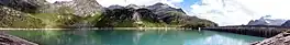 Lago di Robièi is a lake in Ticino, Switzerland. The reservoir has a volume of 6,700,000 cubic metres (5,400 acre⋅ft) and a surface area of 24 ha (59 acres). It is located at an elevation of 1,940 metres (6,360 ft) near Lago dei Cavagnöö and Lago del Zött.