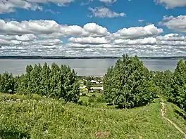 Lake Galichskoye (Russian: Галичское) is a freshwater lake in the northern part of Kostroma Oblast, Russia that takes its name from the old town of Galich sitting on its south bank. It is situated at the height of 100 meters above mean sea level, stretching for 17 km from west to east. The lake area is 75.4 km2. The lake is shallow (up to 5 meters deep), its banks are marshy, and the bottom is silty. The lake has been noted for its fishing, but is currently in danger of silting up. It is the source of the Vyoksa River.