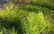 Parthenium is an annual herb with a deep taproot and an erect stem that becomes woody with age.[29] It is a vigorous species that colonises weak pastures with sparse ground cover and will readily colonise disturbed, bare areas along roadsides and heavily stocked areas around yards and watering points.[29]