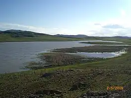 The shores of the lake are covered with reeds. Wheat fields surround the lake. The lake is an important breeding place for waders. It is a habitat for black-necked grebe, ferruginous duck and coot. It host also diverse bird species during the migration periods.[1]