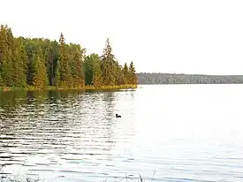 Ironwood Lake is a medium-sized lake in the southeast corner of the recreation area. The name Ironwood is not of local origin.[21] Prior to the official naming of Ironwood in 1951 it was referred to as Rocky Island Lake. Cree names for the lake included Kamistigwapskasik Sagahegan meaning Little Stony Island Lake or Chipay Sagahegan, meaning Skeleton Lake.[22] Nearby Helena, Horne, and Frenchman Lakes empty into Ironwood, which itself empties into Rich Lake and then into the Beaver River. Ironwood Lake is a key point for many spawning fish in the area.