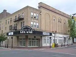 Lakewood's three most prominent hotels were the Laurel House (opened in 1880; closed in 1932), the Lakewood Hotel (opened January 1891, closed in 1925), and the Laurel-in-the-Pines (opened December 1891, burned down in 1967).[36] Lakewood's promoters claimed that its winter temperature was usually about ten degrees warmer than that of New York City and were warmer than points located further south,[37][38] but this claim is not substantiated by official records of the United States Weather Bureau.[39] During the 1890s, Lakewood was a resort for the rich and famous, and The New York Times devoted a weekly column to the activities of Lakewood society.[40] Grover Cleveland spent the winters of 1891–1892 and 1892–1893 in a cottage near the Lakewood Hotel, commuting to his business in New York City.[41] This cottage became part of the Tuberculosis Preventorium for Children in 1909. Mark Twain also enjoyed vacationing in Lakewood. George Jay Gould I acquired an estate at Lakewood in 1896, which is now Georgian Court University.[42] John D. Rockefeller bought a property in 1902 which later became Ocean County Park.[43] Lakewood's hotel business remained strong in the 1920s and 1950s, but went into severe decline in the 1960s.[44]