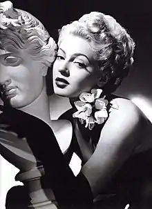 Following her feature film debut in Mervyn LeRoy's They Won't Forget (1937), Turner was the first woman to receive the nickname the "Sweater Girl" due to her form-fitting attire which accentuated her bust.[8][9] Though she herself detested the nickname, it was one with which she became synonymous over the duration of her career,[10] and it would come to be applied to several actresses throughout the 1940s and 1950s.[11] Several years after the release of They Won't Forget, Modern Screen journalist Nancy Squires wrote an extensive article on Turner, in which she noted that she had "made a sweater look like something Cleopatra was saving for the next visiting Caesar."[12]