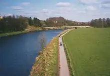 The tramroad crossed the River Ribble on a timber trestle bridge. This structure outlived the tramroad by nearly one hundred years and still stands today albeit with heavy modifications (including the replacement of the wooden trestles with precast concrete ones in 1938 and the bridge deck with prestressed precast concrete in the mid sixties).[1]