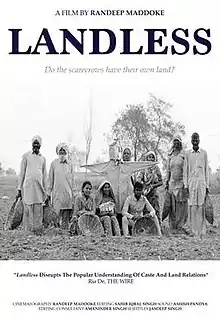 Landless is a 2018 Punjabi[2] documentary film by Randeep Maddoke, a photographer and photojournalist from Punjab, India.[2][3] This documentary film accounts the problems faced by Dalits and caste-based discrimination in their daily life. It recounts the story of the people who have faced abomination like social boycott, communal attacks by Jatts (upper caste) in Punjab. The project records the recent disturbances in the state.[4]