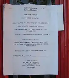 An eviction notice for failure to pay rent. The fact that the city of New Orleans was under a mandatory order and no mail had been delivered since two months before was not taken into consideration.
