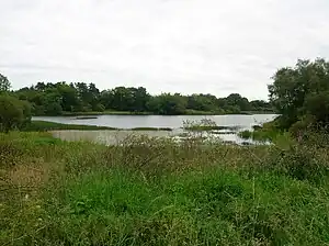 ![]() Cuffhill Reservoir from the site of the old Threepwood Bleach Works. | |