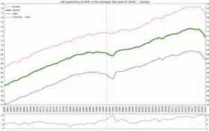 Note: 1993–1994 drop is exclusion of Abkhazia and Tskhinvali Region from population statistics.[33]