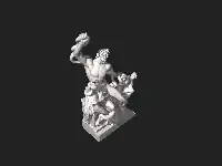When the statue was discovered, Laocoön's right arm was missing, along with part of the hand of one child and the right arm of the other, and various sections of the snake. The older son, on the right, was detached from the other two figures.[40] The age of the altar used as a seat by Laocoön remains uncertain.[41] Artists and connoisseurs debated how the missing parts should be interpreted. Michelangelo suggested that the missing right arms were originally bent back over the shoulder. Others, however, believed it was more appropriate to show the right arms extended outwards in a heroic gesture.[42]