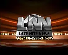 Late Nite News with Loyiso Gola (Late Nite News or LNN) is a South African late-night satirical news television series that aired weekly on e.tv and eNCA from September 2010 to April 2015.[3][4][5] The show, featuring a variety of local stand-up comedians, was created by comedians Loyiso Gola and Kagiso Lediga, and Producer Tamsin Andersson. It was launched in 2010.[5][6][7] It is a collaboration between private broadcaster eNCA and production company Diprente.[8]