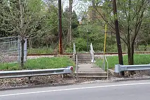 ![]() Station site in 2017. This staircase used to lead to the inbound platform. | |||||||||||