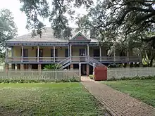 Laura Plantation is a restored historic Louisiana Creole plantation on the west bank of the Mississippi River near Vacherie, Louisiana, (U.S.), open for guided tours.[2] Formerly known as Duparc Plantation, it is significant for its early 19th-century Créole-style raised big house and several surviving outbuildings, including two slave cabins. It is one of only 15 plantation complexes in Louisiana with this many complete structures.[2] Because of its historical importance, the plantation is on the National Register of Historic Places. The site, in St. James Parish, Louisiana, is also included on the Louisiana African American Heritage Trail.