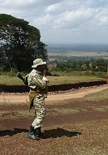 The General Service Unit (GSU) initially known as the Kenya Police Emergency Company, was established by the colonial government to battle Mau Mau freedom fighters (rebels) during the fight for Kenya's independence.[2] It now has around 11,000 paramilitary of which 2,000 are trained by Israelis (Recce group) that forms most of the Presidential guard, VVIP and Diplomatic protection.
