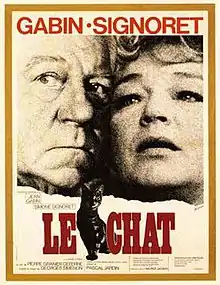 Le Chat ([ ʃa], "The Cat") is a 1971 French-language drama film directed by Pierre Granier-Deferre and based on Georges Simenon's 1967 novel The Cat.[2] It recounts the story of an elderly married couple, Julien Bouin, a former typographist, and his wife Clemence, who used to perform in a circus, who have been loathing each other for years. They hardly talk to each other in their small house, soon to be demolished. Their only form of communication being occasional notes on scraps of paper. A stray cat being the only one he still gives affection to, the cat becomes the object of Clemence's anger. However, they are soon to understand that they cannot live without each other. The storyline of The Cat is speculated to have originated from Georges Simenon's difficult relationship with his mother.