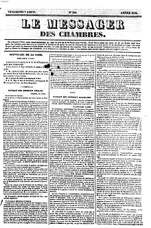 Le Messager des Chambres was a French newspaper whose founder was the vicount de Martignac, ultra-royalist who fought against the laws of censorship in France under the July Monarchy.