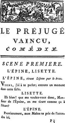 Le Préjugé vaincu is a comedy in one Act, prose, by Marivaux first performed on 6 July 1746 by the King's Ordinary Actors in the theatre of the rue des Fossés Saint-Germain.