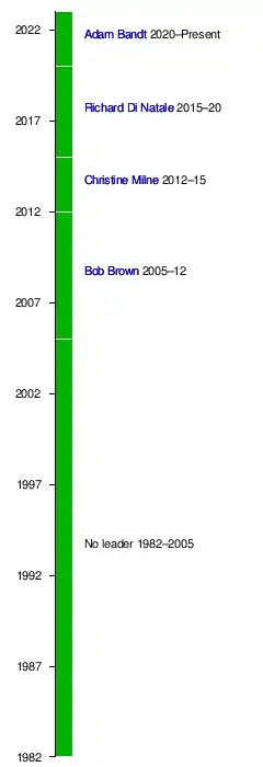 The federal Leaders of the Australian Greens have been as follows: