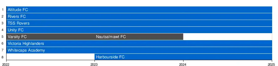 | 2023 | 8 | Whitecaps FC Academy | Victoria Highlanders FC | Whitecaps FC Girls Elite | Whitecaps FC Girls Elite | Whitecaps FC Academy |
