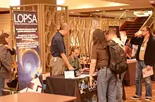 System Administrators gather at an information booth for LOPSA at a conference.
