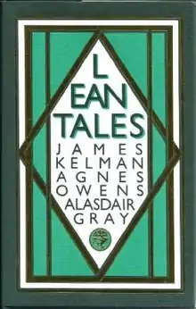 Lean Tales is an anthology of short stories, first published in 1985, written by Scottish authors Alasdair Gray, Agnes Owens and James Kelman,[1] with author illustrations by Alasdair Gray. Contractually obligated to Jonathan Cape to provide a new book, Gray claimed to find himself without new material or ideas, and so approached Kelman and Owens to bulk out a collection of stories with some of their own. As is often the case with Gray's later stories, some of his own contributions are recycled from his previous writing, including The Story of a Recluse (based on his television play) and A Report to the Trustees of the Bellahouston Travelling Scholarship (based on report written after Gray received a grant to travel abroad as an art student).