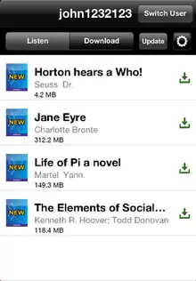 A Learning Ally member's personal audiobook library.