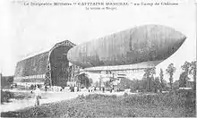 During the autumn of 1908 and the spring and summer of 1909, the République was engaged in two campaigns of peacetime military operations from her base at the French airship headquarters at Chalais-Meudon, the objectives of which were to train the pilots and the support team and to assess the airship's capabilities.[11] These test flights included a long flight on Wed. 4 August 1909, during which she covered 130 miles (209 km) in 6 hours; this was reported in Flight Magazine on 7 August 1909.[12]