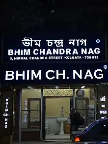 The entrance of Bhim Chandra Nag, the misti'r dokan attributed to the invention of Ledikeni.
