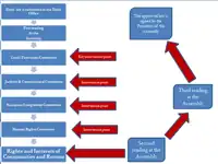 Laws most often originate at the Ministries, which are responsible for both drafting laws and amending new laws. Once the Minister approves the draft law, it is sent to the Prime Ministers Office and Office of Legal Support Services. OLSS is responsible for coordination and review of all draft laws drafted by the government. Once the OLSS reviews the law, a request is submitted to the Permanent Secretary of the PMO to establish a working group at the government level. After the government working group completes its review the, law is sent to the Ministry of Economy and Finance (MoEF) and Ministry for European Integration (MEI), before it will make its final rounds at the Assembly. The MOEF reviews the financial and budgetary implications of the law, while the MEI evaluates if the law is compatible with the EU legislation. Upon their approval of the law, the draft is sent to the PS of the PMO to be included on the agenda of the Government Coordinating Group for a final review. This is also the final step in the legal drafting process within the Government. Draft law is then forwarded to the Kosovo Assembly for their review.[8] The law is afterwards registered with the Table Office at the Assembly. After registration, the law undergoes a “first hearing.” After the hearing, the law is reviewed by the respective functional Committees, which propose amendments and send it back for the second reading. A law can go through three readings in the Assembly. After a law is approved by the Assembly it is sent to the President who can sign it or return it within 8 days to the Assembly for revision. The law comes into effect once it is signed, and promulgated by the President 15 days after the publication in the Official Gazette.[8]