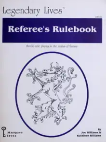 In 1990 Marquee Press published two books written by Joe Williams and Kathleen Williams that together form the Legendary Lives role-playing game: The Player's Primer and the Referee's Rulebook.[2] Referee's Rulebook is a 98-page softcover book with art by Kathleen Williams.[3]