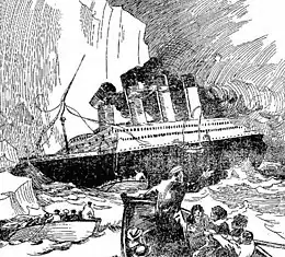 - ↑ Staff (16 April 1912). "Titanic sinks four hours after hitting iceberg". The New York Times. pp. 1–2. Retrieved 19 December 2008.