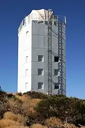 GREGOR[10] is a 1.5 m telescope for solar research of the Teide Observatory on Tenerife. It is a new type of solar telescope, which supersedes the previous 45 cm Gregory-Coudé telescope. GREGOR is equipped with adaptive optics and will achieve a resolution of 70 km of the Sun's surface. The investigation of these small structures is important for the understanding of the underlying processes of the interaction of magnetic fields with plasma turbulence on the Sun. The development of the Gregor telescope will be led by the Kiepenheuer-Institut für Sonnenphysik (KIS)[11] with the participation of several institutes. The telescope is named after James Gregory, the inventor of the Gregorian telescope.