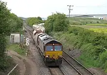 The Leicester–Burton upon Trent line is a freight-only railway line in England linking the Midland Main Line near Leicester to the Derby to Birmingham line at Burton upon Trent.[note 1] The line was built by the Midland Railway, which had acquired the Leicester and Swannington Railway in 1847, improving it and extending it. It opened throughout in 1849. The line connected an exceptional number of collieries and industrial premises, and several industrial branch lines were built radiating from it. Swadlincote was already an established community engaged in industry and there was a complex of branch lines there. The passenger service on the line was discontinued in 1964, and much of the mining-based industry has closed down; quarrying is the dominant residual originating traffic. There are proposals to reopen the passenger service, and these are under review at present (2022).