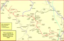 The Midland Railway had taken over the Leicester and Swannington Railway network by Act of 27 July 1846.[4][12] The Midland began working the L&SR on 1 January 1847,[5] and constructed the through Leicester to Burton line, using part of the L&SR. The former L&SR continued in use, and there was a new junction at Desford, and another at Swannington Junction, near present-day Coalville, to serve the respective extremities of the old L&SR. The original L&SR facilities at Leicester continued in use as the West Bridge branch. The West Bridge terminus was considered disgraceful for many years, and on 13 March 1893 it was replaced by a passenger station on a slightly different site.[13] Passenger services were withdrawn on 24 September 1928 and freight on 2 May 1966.[14] The short extremity at Swannington including the incline closed on 14 November 1947.[15]