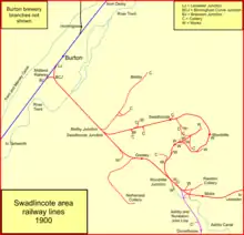 Leicester– Burton upon Trent line | |||||||||||||||||||||||||||||||||||||||||||||||||||||||||||||||||||||||||||||||||||||||||||||||||||||||||||||||||||||||||||||||||||||||||||||||||||||||||||||||||||||||||||||||||||||||||||||||||||||||||||||||||||||||||||||||||||||||||||||||||||||||||||||||||||||||||||||||||||||||||||||||||||||||||||||||||||||||||||||