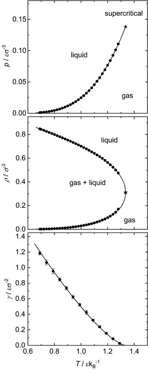 - ↑ Heier, Michaela; Stephan, Simon; Liu, Jinlu; Chapman, Walter G.; Hasse, Hans; Langenbach, Kai (2018-08-18). "Equation of state for the Lennard-Jones truncated and shifted fluid with a cut-off radius of 2.5 σ based on perturbation theory and its applications to interfacial thermodynamics". Molecular Physics. 116 (15–16): 2083–2094. Bibcode:2018MolPh.116.2083H. doi:10.1080/00268976.2018.1447153. ISSN 0026-8976. S2CID 102956189.