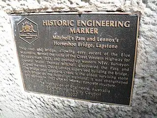 14. "Mitchell's Pass and Lennox's Horseshoe Bridge, Lapstone,1833-". Engineers Australia. Retrieved 3 May 2020.