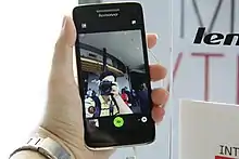 Lenovo introduced the Vibe Shot smartphone at the 2015 World Mobile Congress. The device's rear camera has a 16-megapixel sensor with a six-piece modular lens, autofocus that uses an infrared sensor, a tri-color LED flash, and optical image stabilization. A hardware shutter button is included in order to avoid the need to open the camera application. It has an 8-core Snapdragon 615 SoC processor that runs at 1.7 gigahertz, 3 gigabytes of RAM, 32 gigabytes of internal storage, and a five-inch display with 1080p resolution. The Vibe Shot runs on the Android 5.0 operating system.[54]