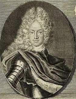 Leopold of Schleswig-Holstein-Sonderbourg-Wiesenbourg (Brzeg, 12 January 1674 - Vienna, 4 March 1744) was the 3rd Duke of Schleswig-Holstein-Sonderburg-Wiesenburg and Knight in the Order of the Golden Fleece since 1721.