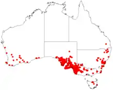 Lepidosperma viscidum, the sticky saw sedge, is a grass-like plant found in south eastern Australia. Usually seen in heath and woodland on sandy and rocky sites, it may grow to 60 centimetres high.[1] This is one of the many plants first published by Robert Brown with the type known as "(M.) v.v." appearing in his Prodromus Florae Novae Hollandiae et Insulae Van Diemen in 1810. The specific epithet viscidum is derived from the Latin with a meaning of "sticky", which refers to the sticky resin from the base and margins of the leaves and stem margins. On drying, the resin turns a red colour.[2]