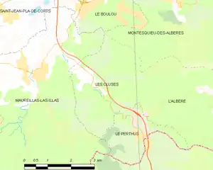 Les Cluses is located in the canton of Vallespir-Albères and in the arrondissement of Céret.