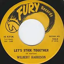 In 1962, Harrison recorded "Let's Stick Together" for Fury Records, one of several labels operated by record producer Bobby Robinson, that had issued "Kansas City". Fury pressed the single with two different A-side and B-sides: "Kansas City Twist" (Fury 1059) and "My Heart Is Yours" (Fury 1063). It had been three years since Harrison's last chart appearance[4] and the singles failed to reach the charts.[3]