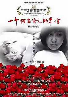 Letter from an Unknown Woman is a 2004 Chinese film written and directed by Xu Jinglei and is her second feature film as director after 2002's My Father and I. The film is an adaptation of Stefan Zweig's 1922 novella of the same name which was also adapted in 1948 by screenwriter Howard Koch. The film stars Xu and Jiang Wen as lovers during the 1930s and 1940s in Beijing. The film was produced by Asian Union Film & Media.[1]
