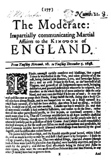 The Moderate[28] was a newspaper published by the Levellers from July 1648 to September 1649.[2]