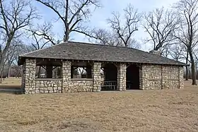- ↑ Bonnie Wright (n.d.). "National Register of Historic Places Inventory Nomination Form: Sugar Lake State Park Open Shelter" (PDF). Missouri Department of Natural Resources. Retrieved September 1, 2016.
