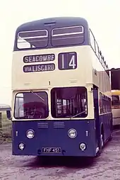 In 1968, three Atlanteans were bodied by Marshall as single deck buses for Great Yarmouth Corporation.[10] Portsmouth had 12 Atlantean chassis with single deck bodywork from Seddon Pennine, and lastly Birkenhead ordered three Northern Counties bodied single deck Atlanteans, albeit delivered to Merseyside in Birkenhead colours.