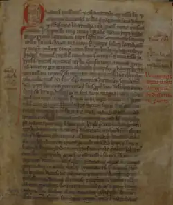 The Libellus de expugnatione Terrae Sanctae per Saladinum (Little Book about the Conquest of the Holy Land by Saladin), also called the Chronicon terrae sanctae (Chronicle of the Holy Land), is a short anonymous Latin account of the conquests of Saladin (Ṣalāḥ al-Dīn) in the Holy Land between 1186 and 1191.[1][2] The core of the text was written shortly after the events it describes and then supplemented by the addition of an account of the Third Crusade early in the thirteenth century. This probably took place at Coggeshall Abbey in England. Neither the original author nor the continuator/compiler is known by name.[3]