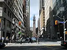 Principal photography began on 18 February 2014 in Toronto, Ontario, Canada and continued till 27 March 2014.[33][34] Pattinson filmed a scene in snow in Toronto on 18 February 2014.[35][36] On 20 February 2014, filming took place at 33rd Maitland street Toronto.[37] Filming took place inside and outside of a building in Downtown Toronto on 21 February 2014 with Pattinson, Kingsley and DeHaan.[38] Pattinson and DeHaan filmed scenes at the farm outside of Toronto on 26 February – 1 March 2014.[39][40] On 4 March 2014, filming took place downtown Millbrook near Peterborough at King Street, which was transformed into the 1950s era and at the Pastry Peddler shop which was transformed into a 1950s shoe store.[41][42][43] A rainy scene was shot in downtown Toronto on 7 March 2014.[44] On 8 March 2014 filming took place at Bay Street in downtown Toronto, which was transformed into 1950s New York City street.[45] On 11 March 2014, Pattinson and DeHaan shot a motorcycle riding scene in Toronto,[46][47] on a bike resembling a 1955 Trophy Triumph, James Dean's bike.[48][49] On 15 March 2014, filming took place at Victoria and King streets in downtown Toronto with Pattinson and Edgerton.[50][51] Scenes shot at 71 Gloucester Street Toronto on 20 March 2014.[52]