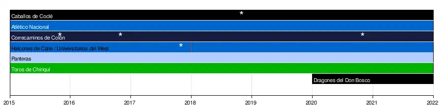| Caballos de Coclé | 1 | 2 | 2019 | 2016, 2017 |