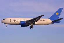 3. "Routes". Flightglobal. Flight International. 31 March 1999. Archived from the original on 6 March 2016. Brussels-based Société Générale de Gestion et de Transport (SIGT) has been appointed general sales agent for cargo by Congo airline Lignes Aériennes Congolaises (LAC) to help redevelop activities between Europe and the Democratic Republic of Congo. Government owned LAC, which succeeds former Air Zaire that went bankrupt, has contracted Brussels-based long-haul low-cost airline City Bird to provide a Boeing 767-300ER on wet-lease, initially to begin scheduled services between Kinshasa and Europe (Brussels). City Bird will also operate freight services using an Airbus A300-600F.